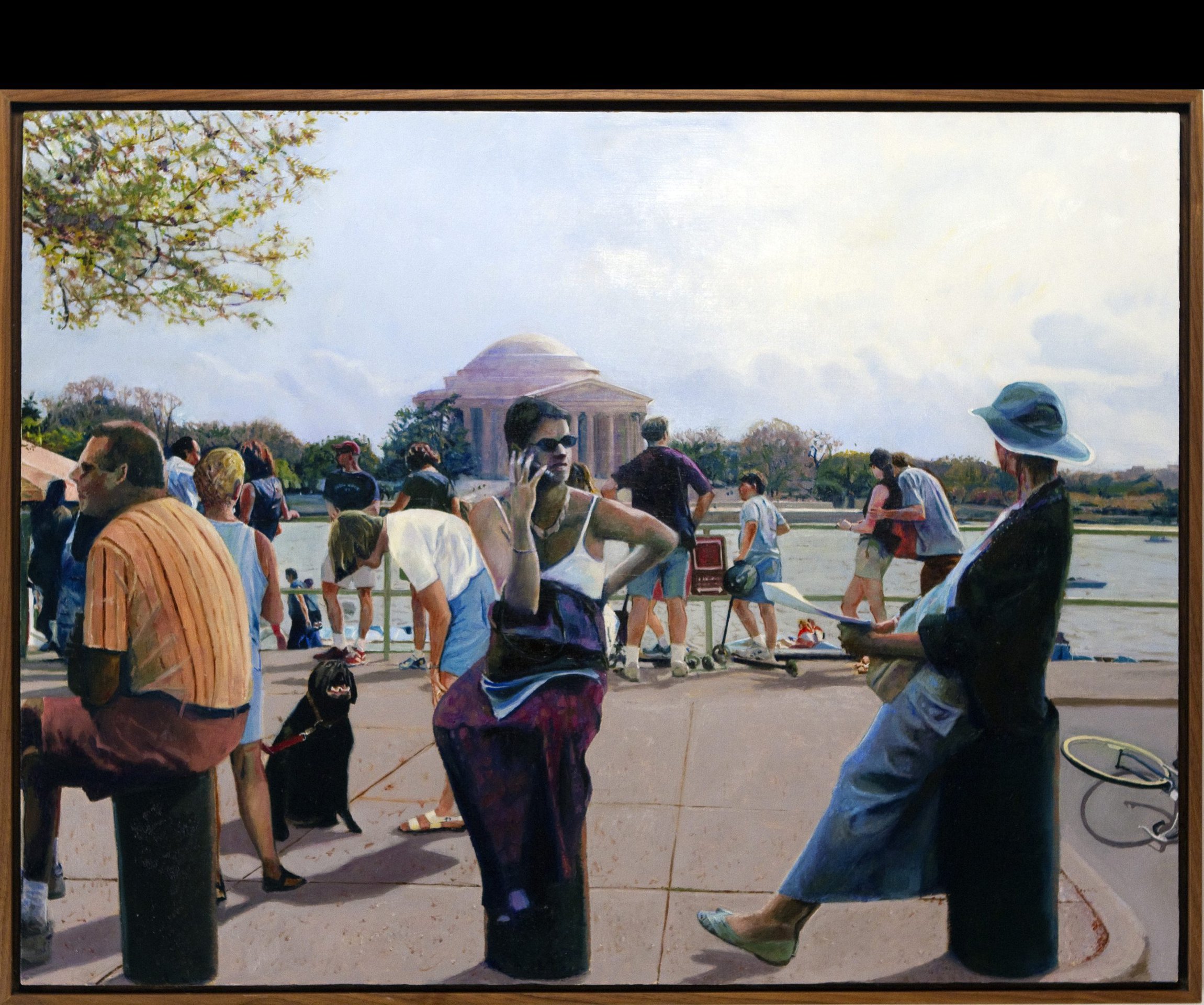 Bicycle Accident People gather at the Jefferson Memorial. It is a place that unites Americans, and yet the figures in this painting function as individuals or small groups that are oblivious to the commonality of all, even to the bicycle accident off to their right. Description