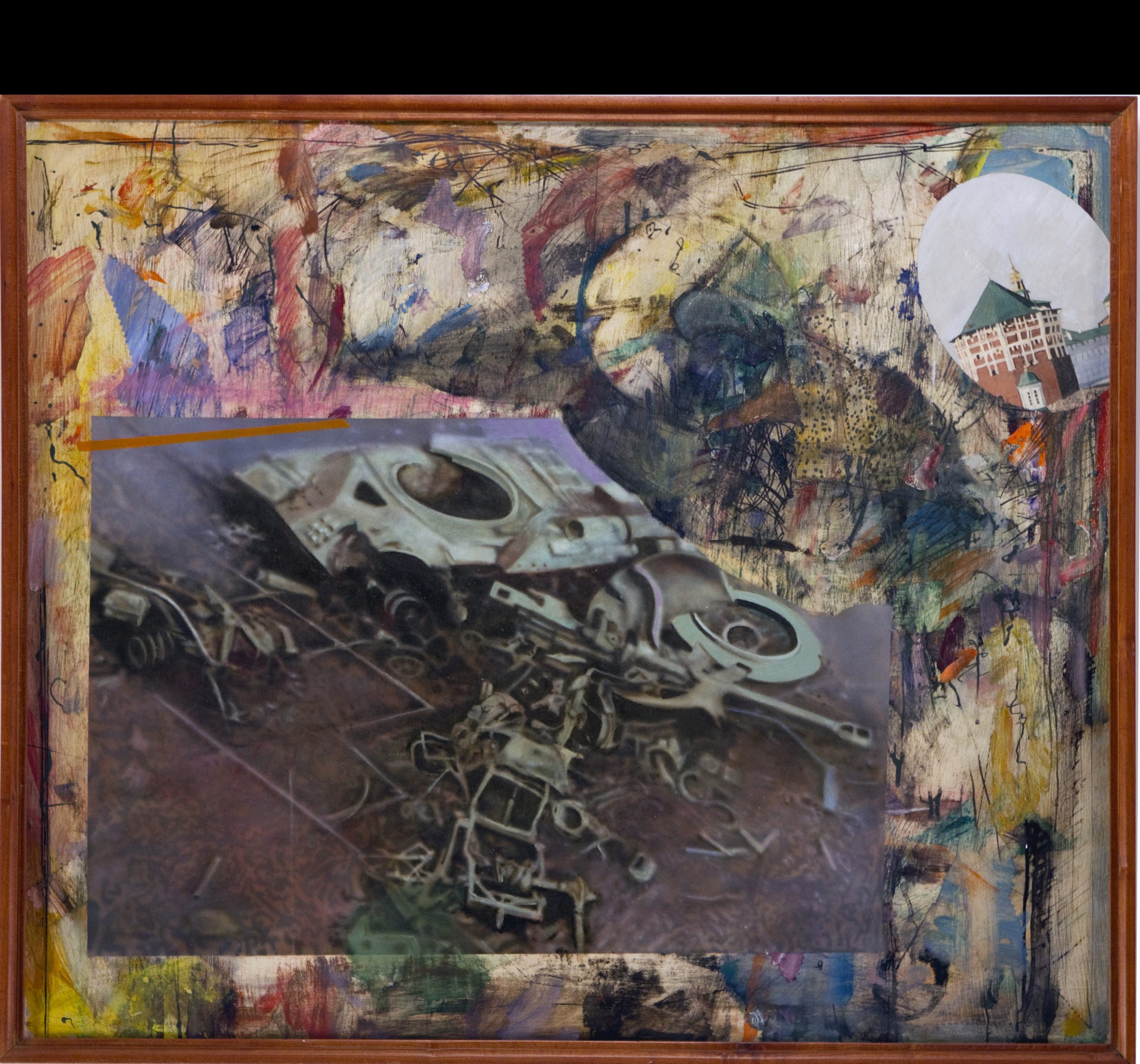The Breakup of the USSR All the signs were glaringly obvious, so Fenton, “of the duck and cover generation,” made this prediction painting that the USSR was going to break up. He used a blown-up Soviet tank as a visual metaphor for the giant’s collapse. Description