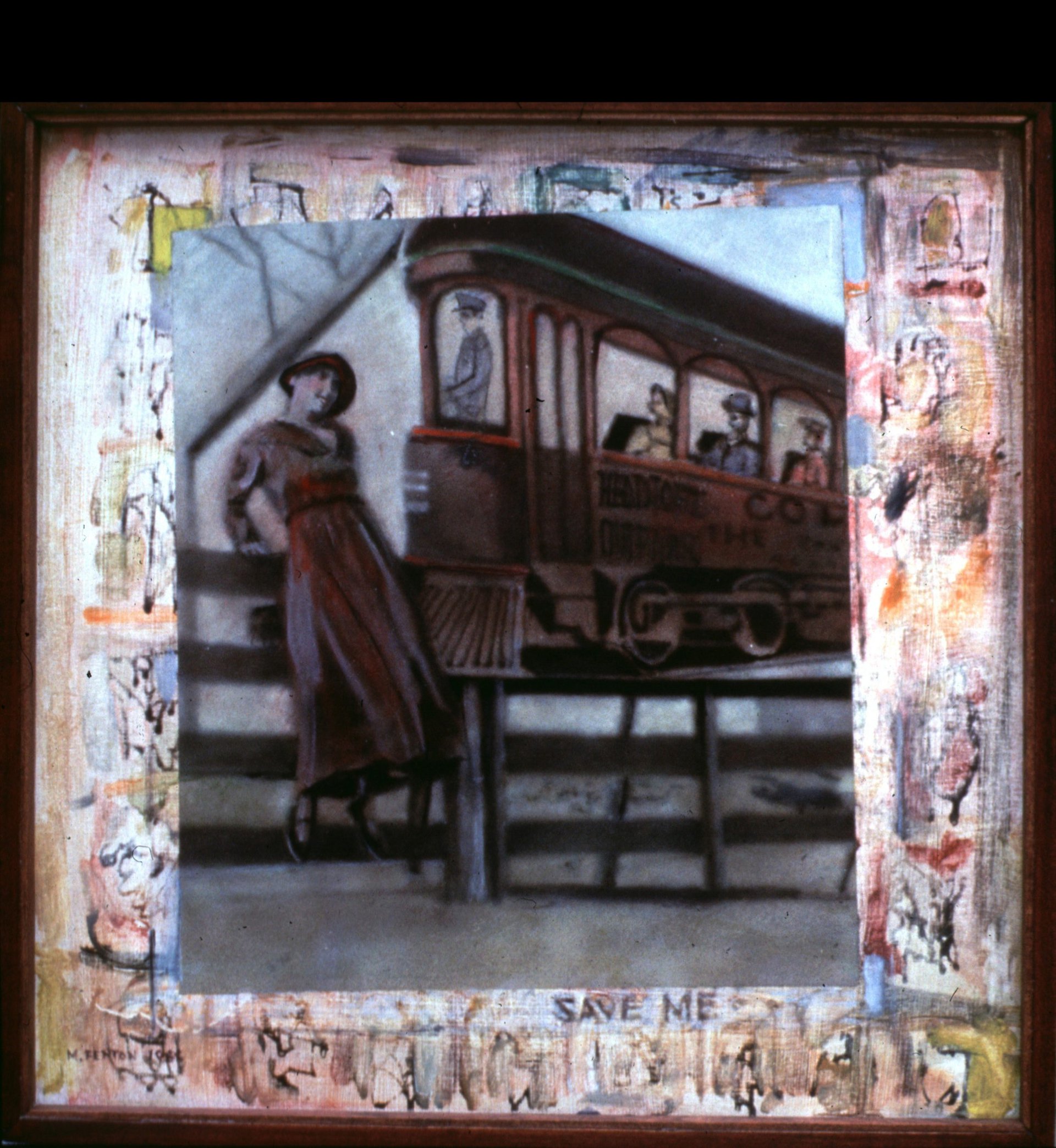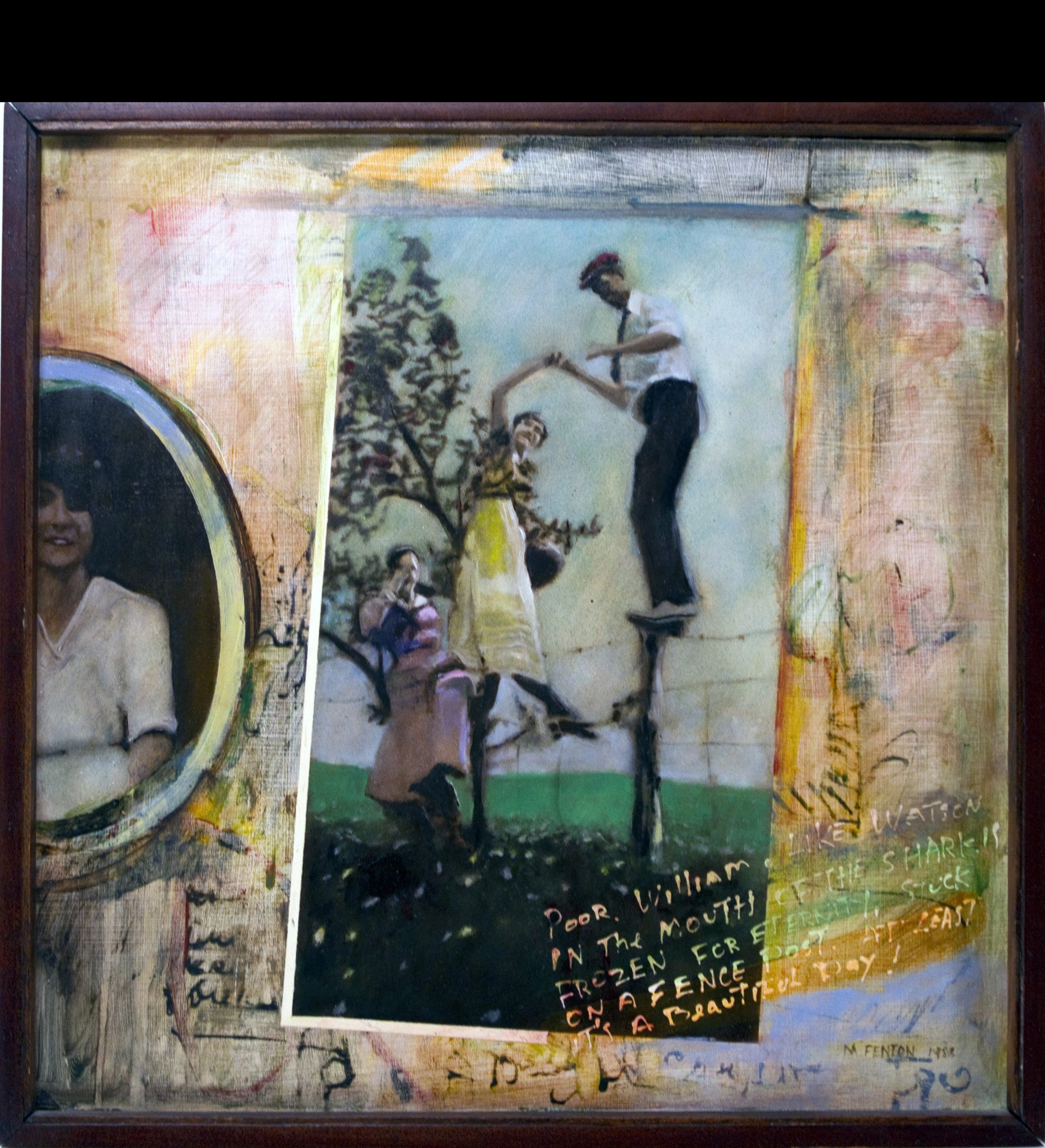 Gertrude's Trunk- My New Hat Rummaging through an old trunk once owned by Gertrude Hodgeman, a missionary nurse who worked in China, Fenton came across photographs, including one that had the pencil inscription "My New Hat" scrawled on the surface. Knowing that Ms. Hodgeman was long gone and thinking about the inscription, the artist was inspired to create a series of paintings dealing with the energy and vigor of the pictured youth and the fleetingness of that energy, idealism, and life itself. Description
